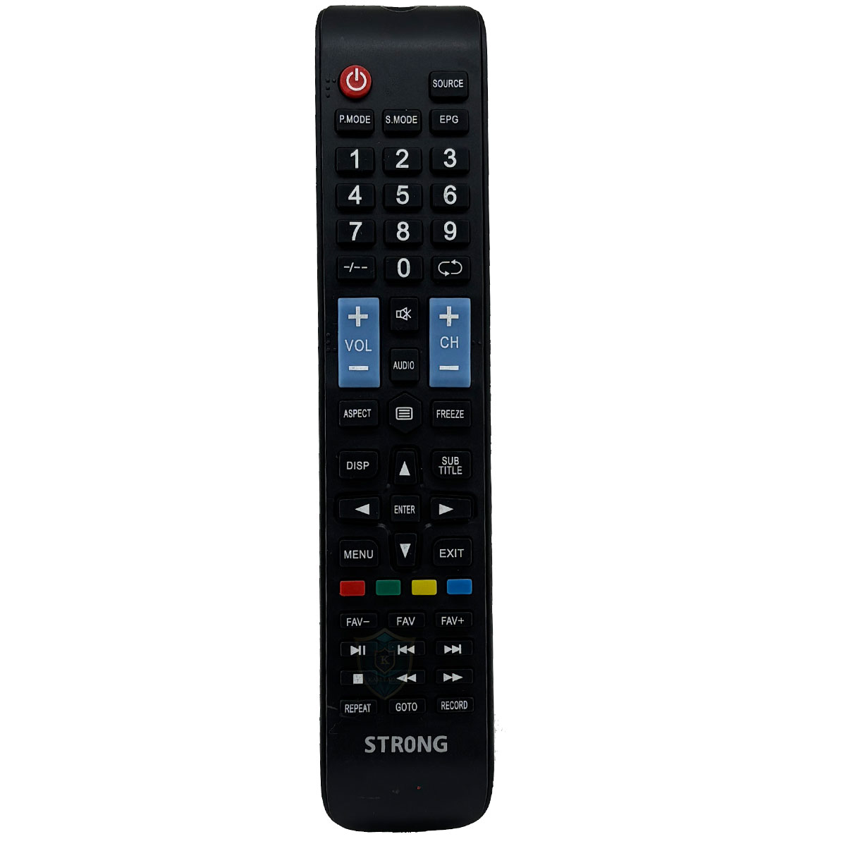 Strong SRT serisi (7000/7700/8100/8500) uydu alıcılarıyla uyumlu, mavi tuş detaylı, kurulum gerektirmeyen yedek kumanda.